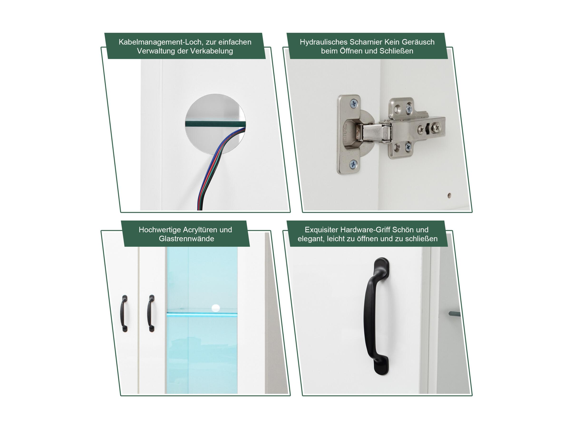 Vitrine LED 16 Couleurs avec 2 Portes Transparentes, Buffet Éclairé pour Salle à Manger