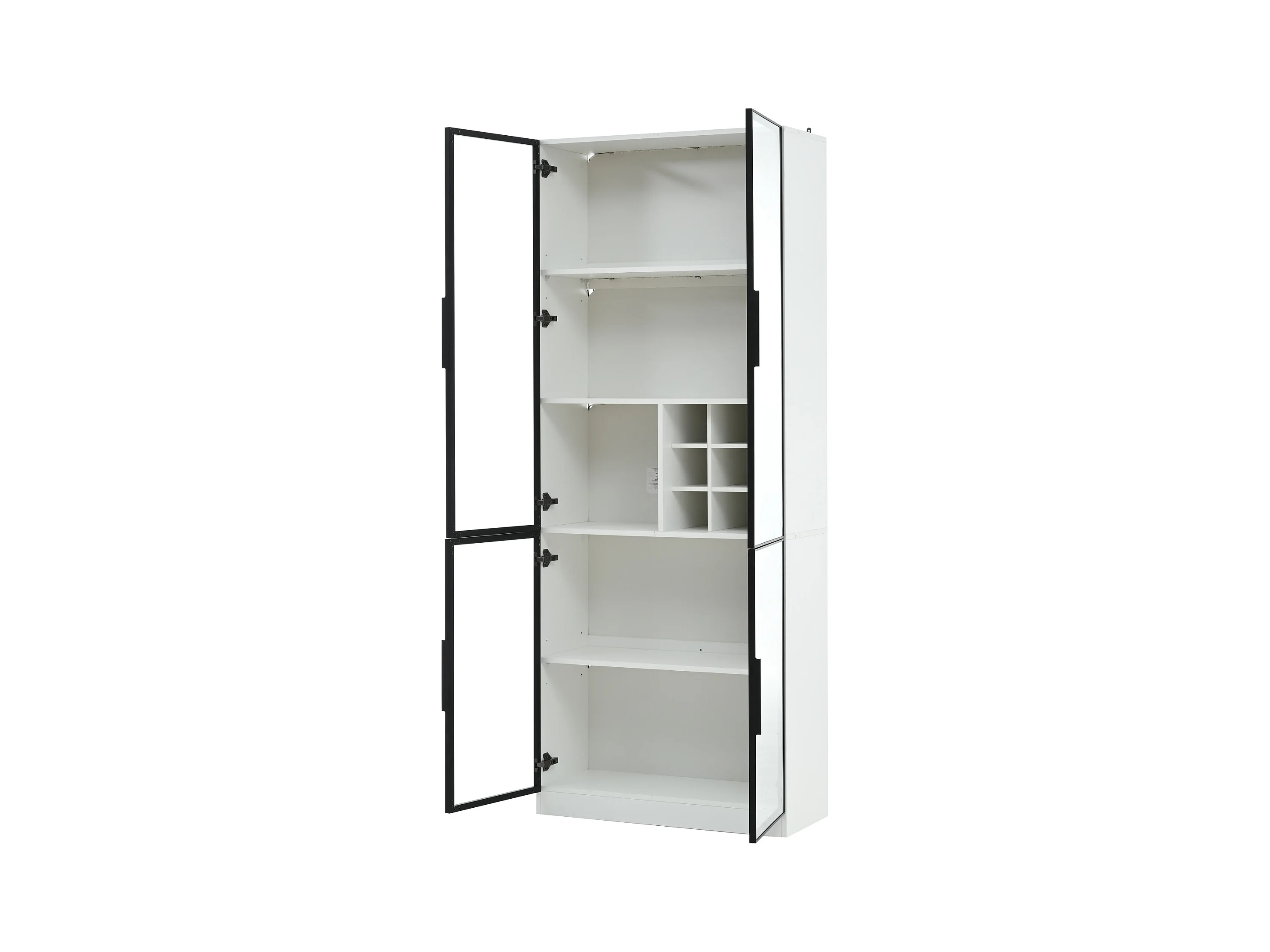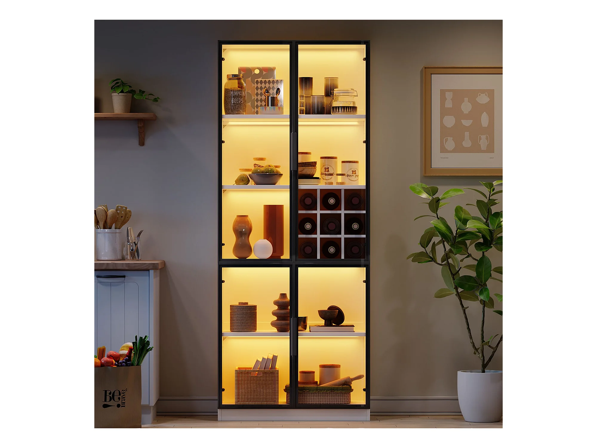 Vitrine LED avec étagères de rangement et casier à vin, blanche - pour salons et bureaux