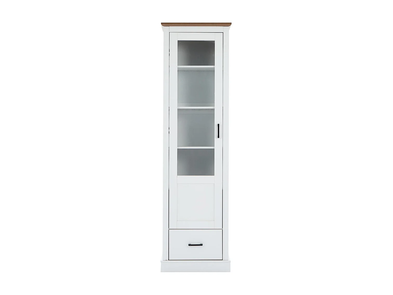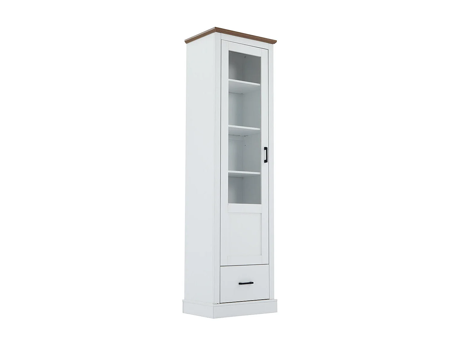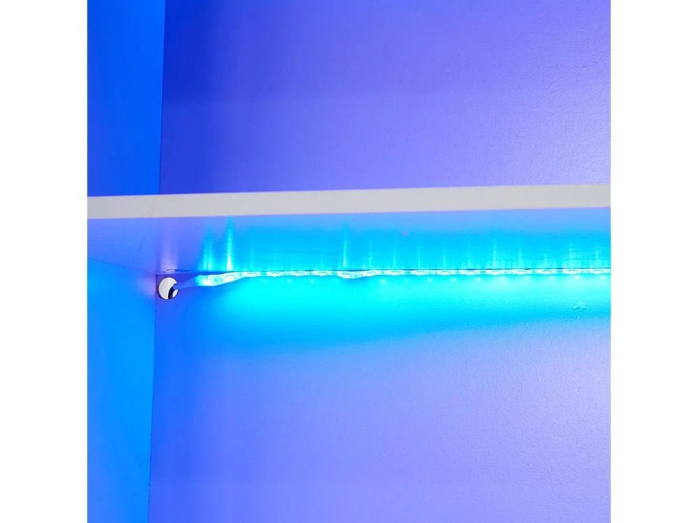 Vitrine LED avec port et tiroir USB télécommande 16 couleurs sur pied avec décor bois armoire de présentation à 5 compartiments MDF blanc