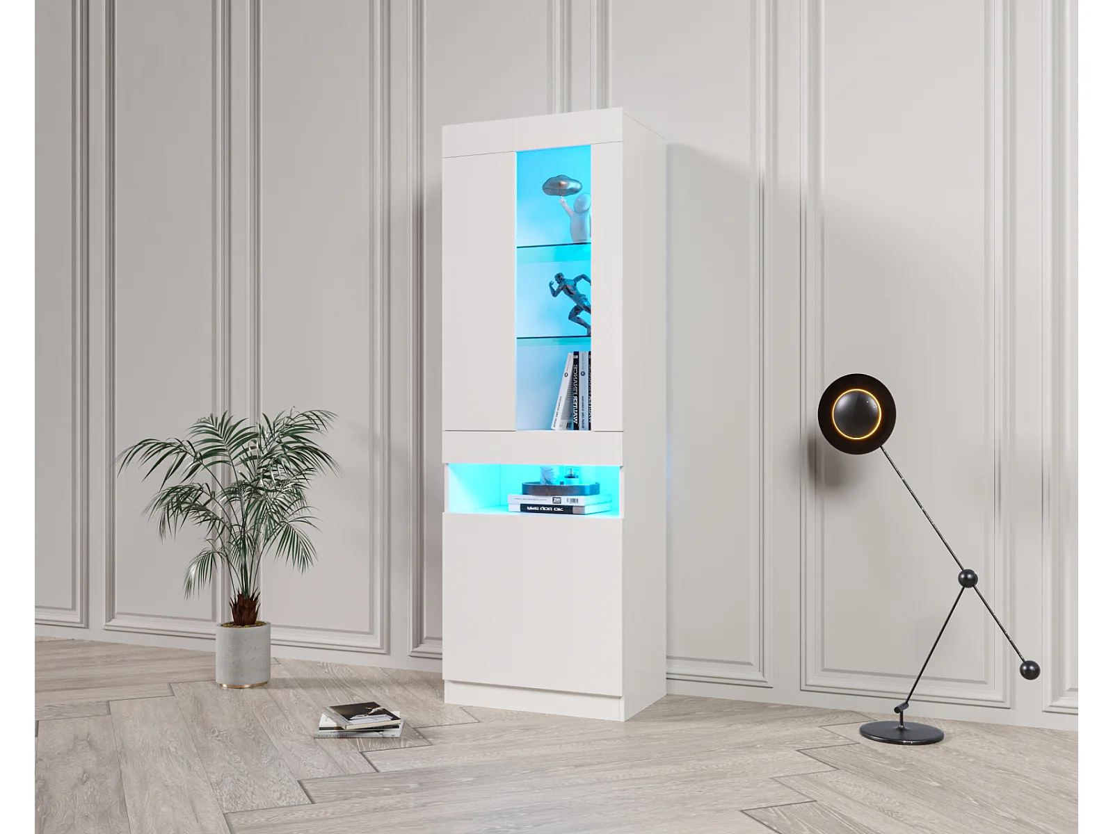 Vitrine LED RGB 16 Couleurs, Armoire de Rangement Blanc, Buffet avec Éclairage Ambiant