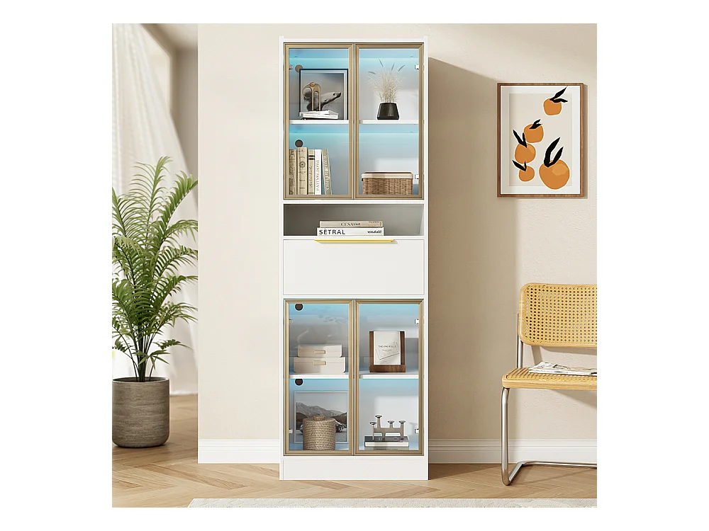 Vitrine armoire haute 1 tiroir 4 placards verre LED brillante design buffet salon présentoir blanc