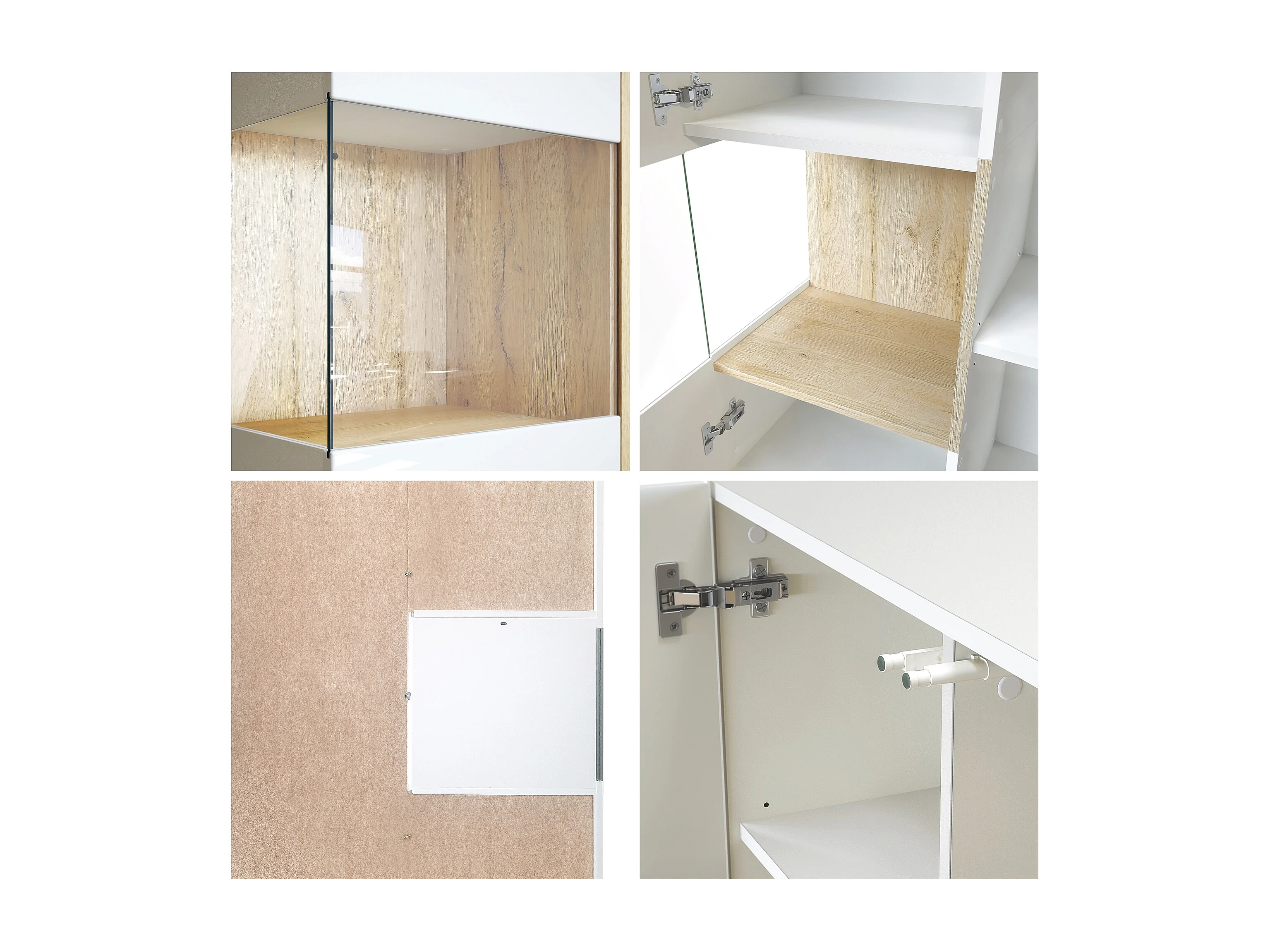 Vitrine Morena V2, vitrine sur pied avec 2 portes et insert en verre, corps noir mat, façades noir haute brillance, Cube noir mat