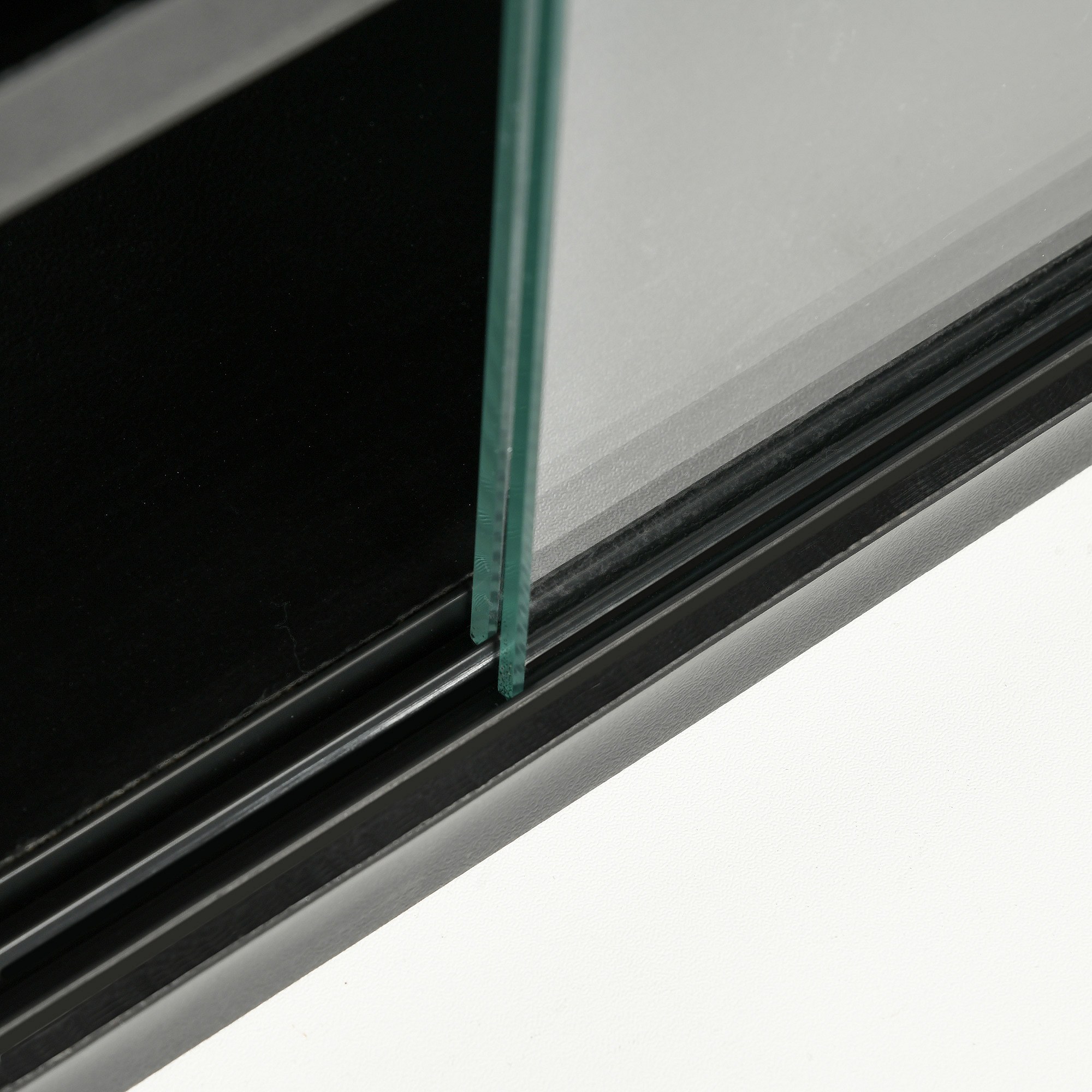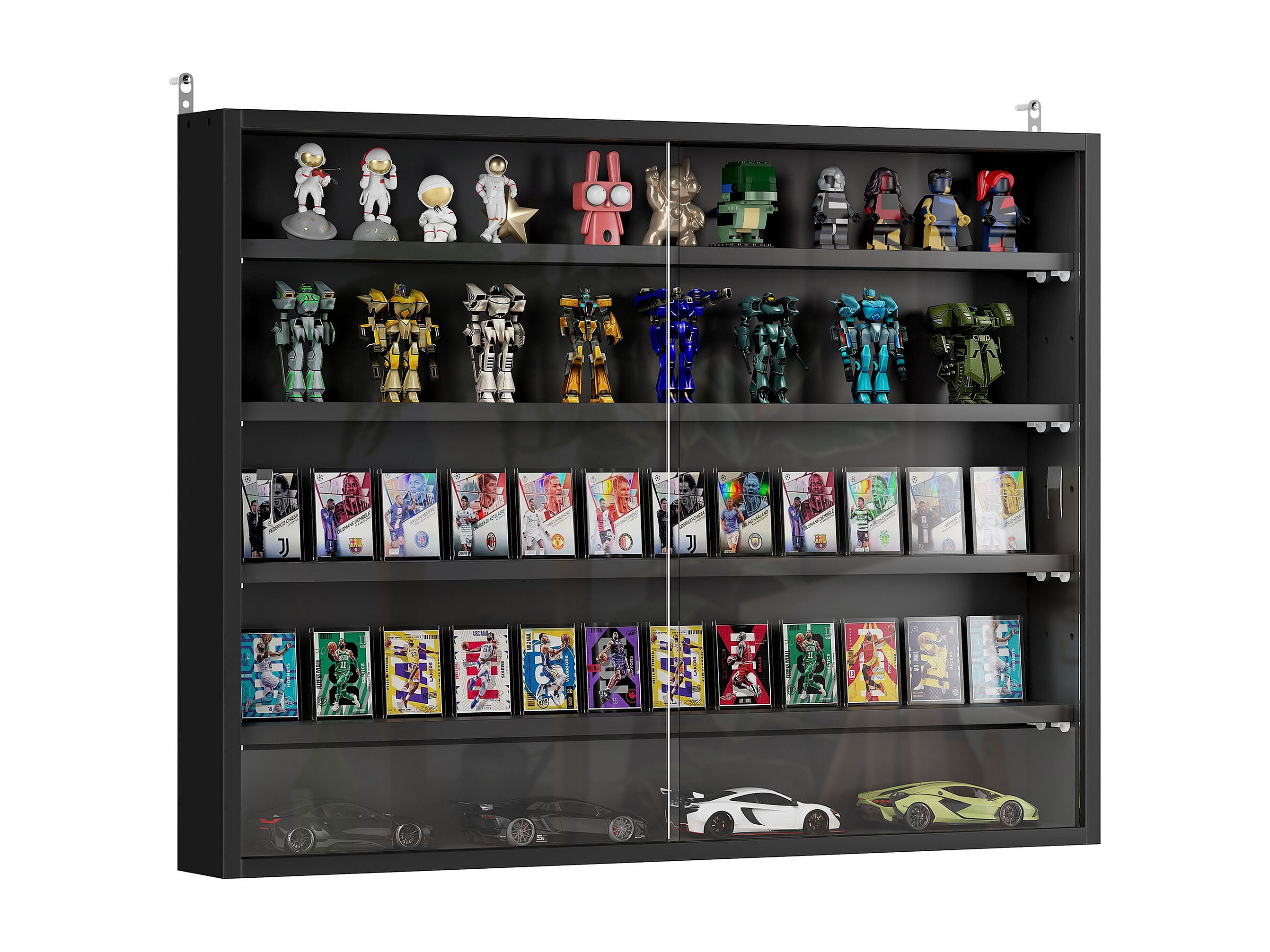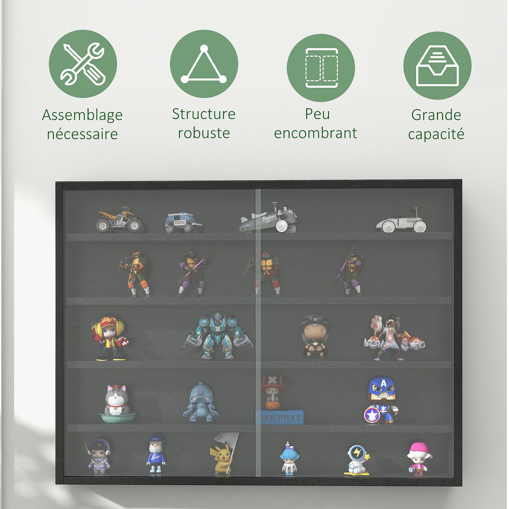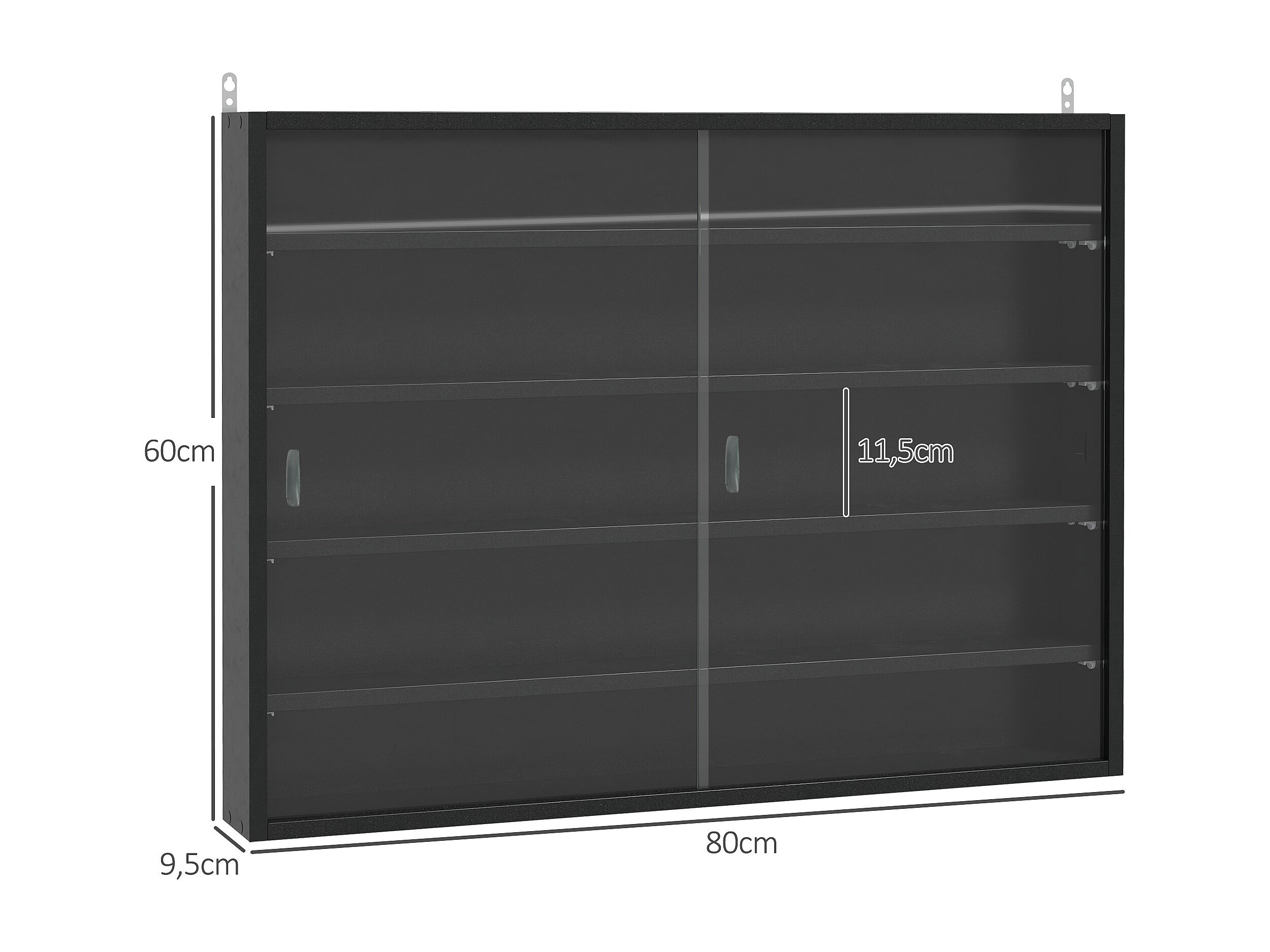 Vitrine murale étagère - 5 étagères réglables - 2 portes coulissantes verre - panneaux noir