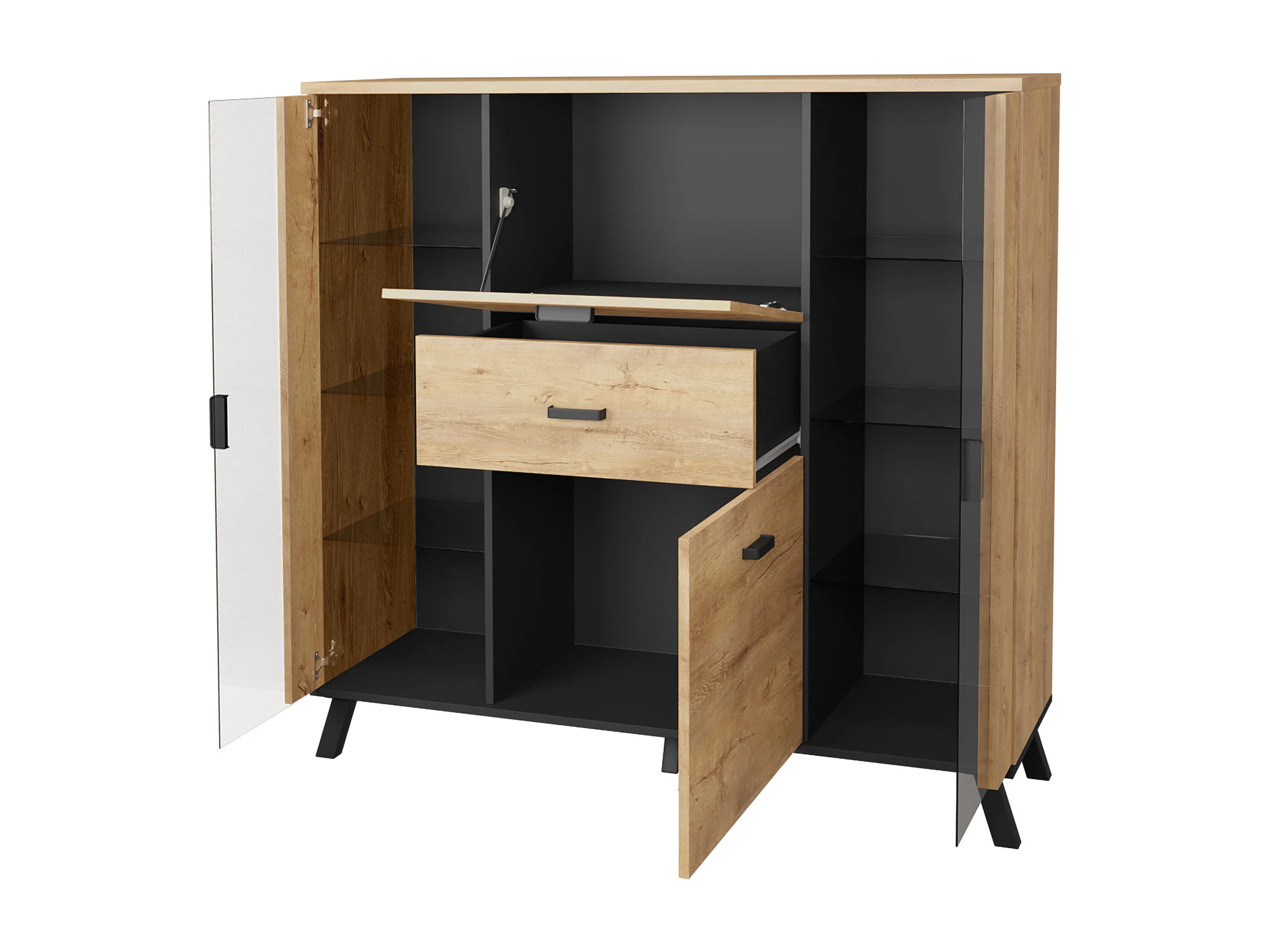 Commode Talsere 102, Chêne de Lefkas|Noir, Avec tiroirs et portes, Nombre de tiroirs: 1,