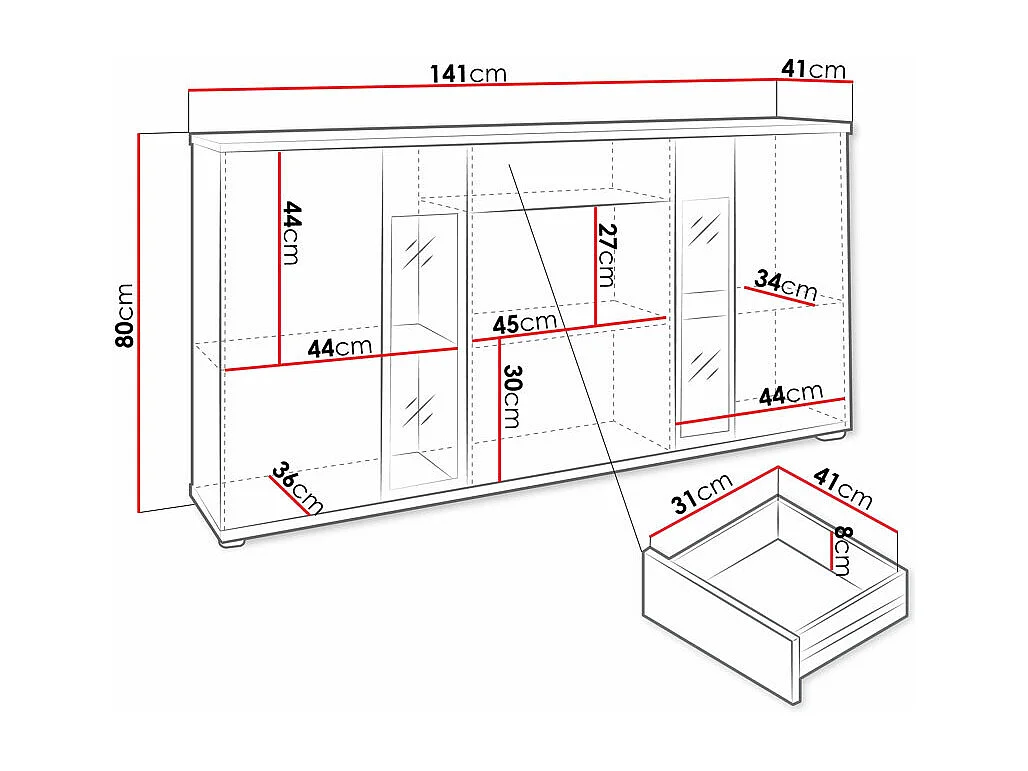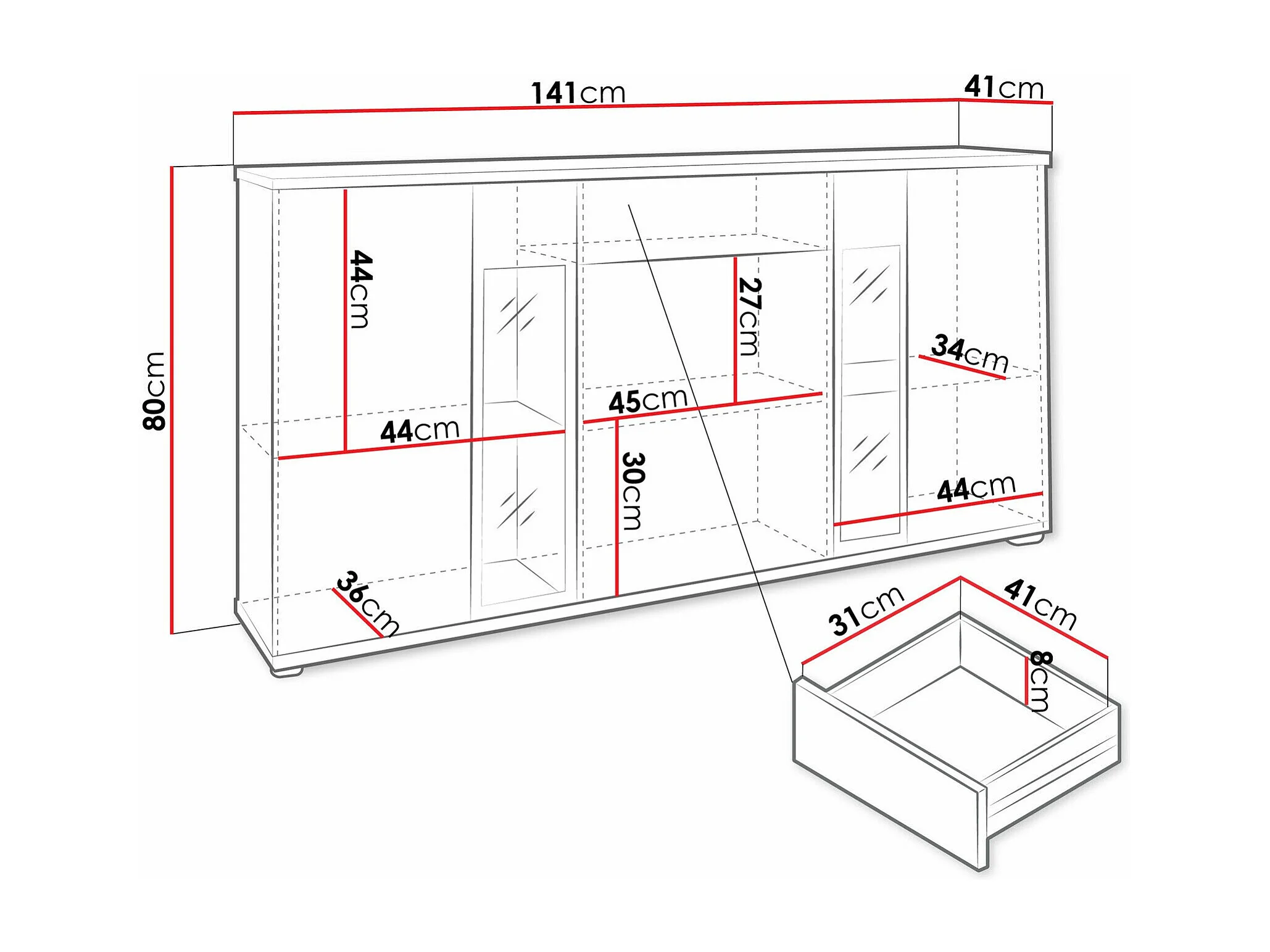 Commode Tucson 114, Chêne de Lefkas, Avec tiroirs et portes, Nombre de tiroirs: 1, 80cm