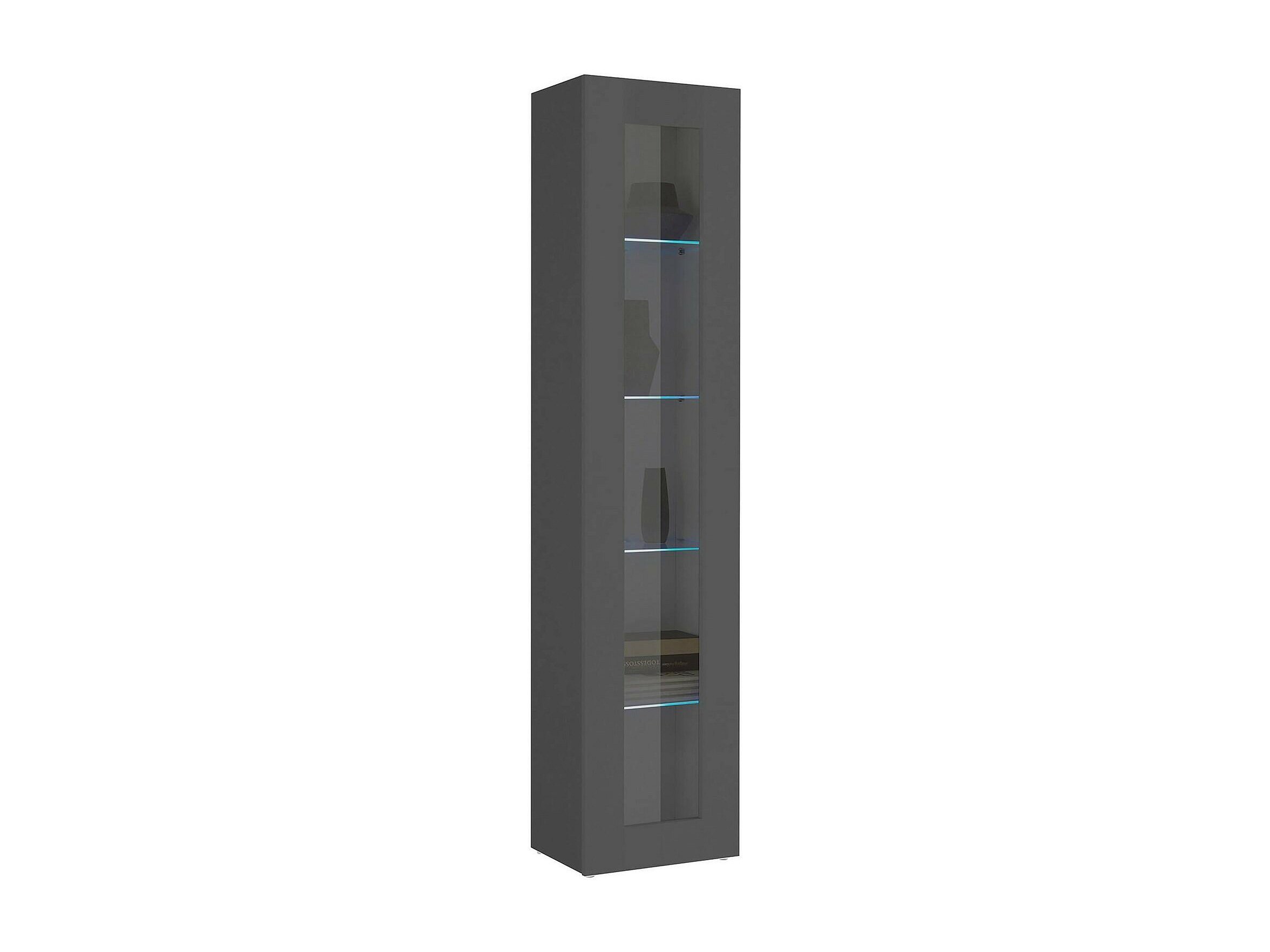 Vitrine Vladimiro, buffet 1 porte avec étagères en verre, meuble de salon polyvalent, 100% Made in Italy, 40x30h180 cm, Anthracite