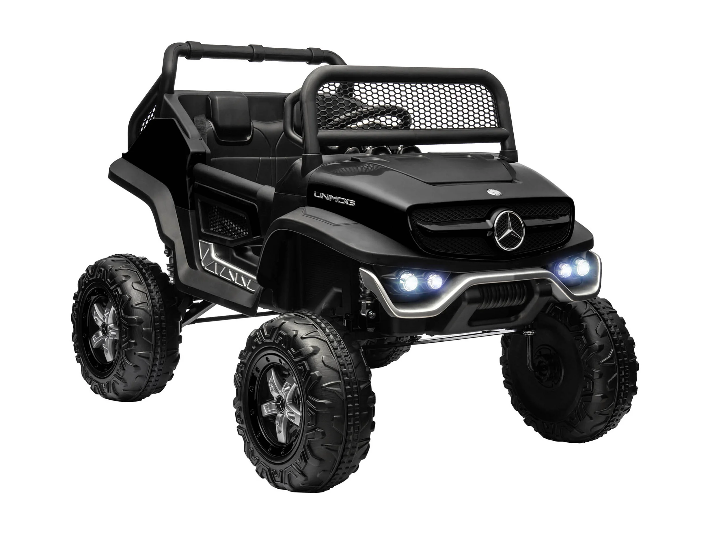 Voiture électrique 4x4 pour enfants de 3 à 8 ans 12 V Mercedes-Benz Unimog 2 moteurs avec télécommande, roues suspendues, klaxons, lumières, musique, noir
