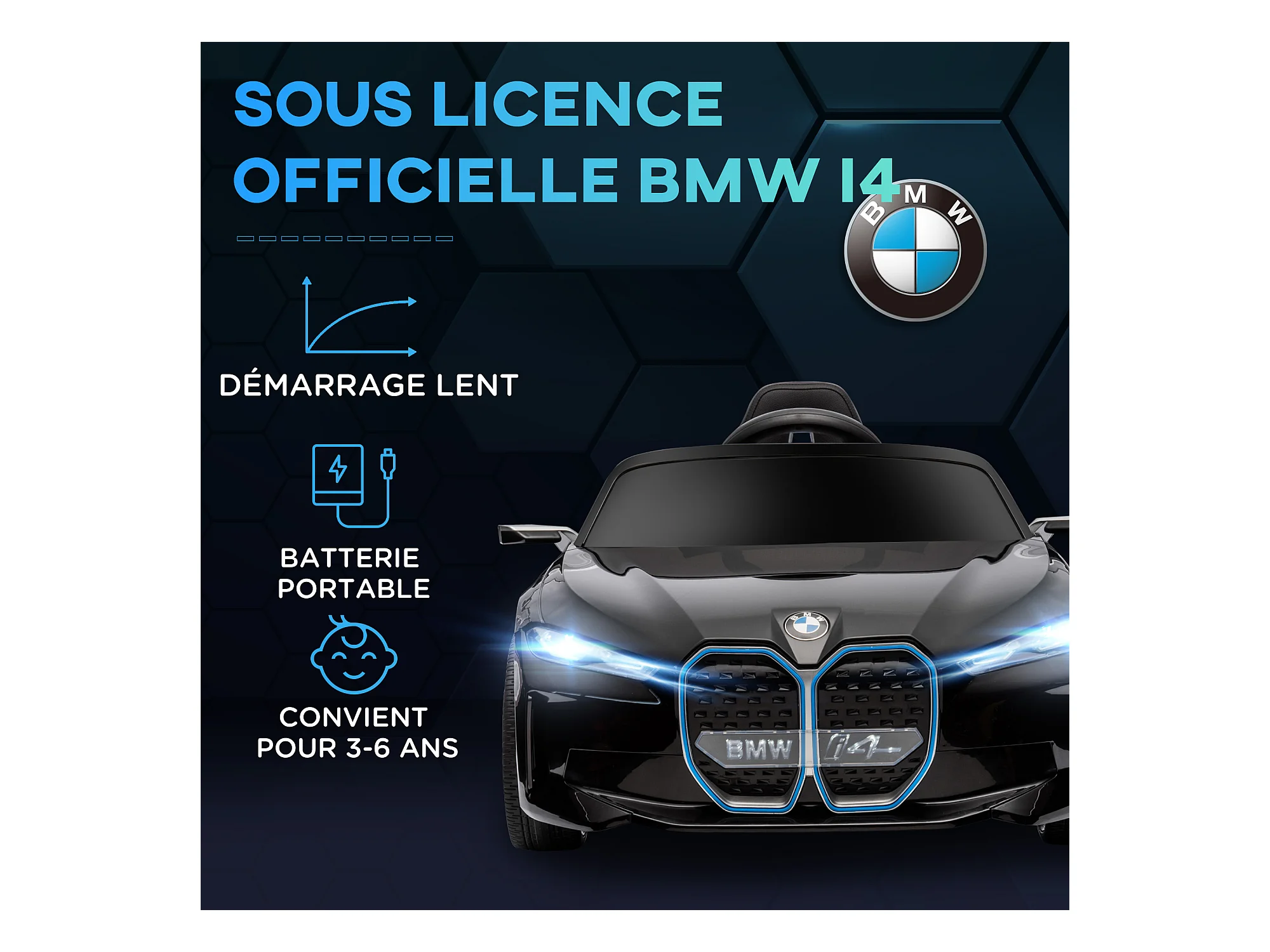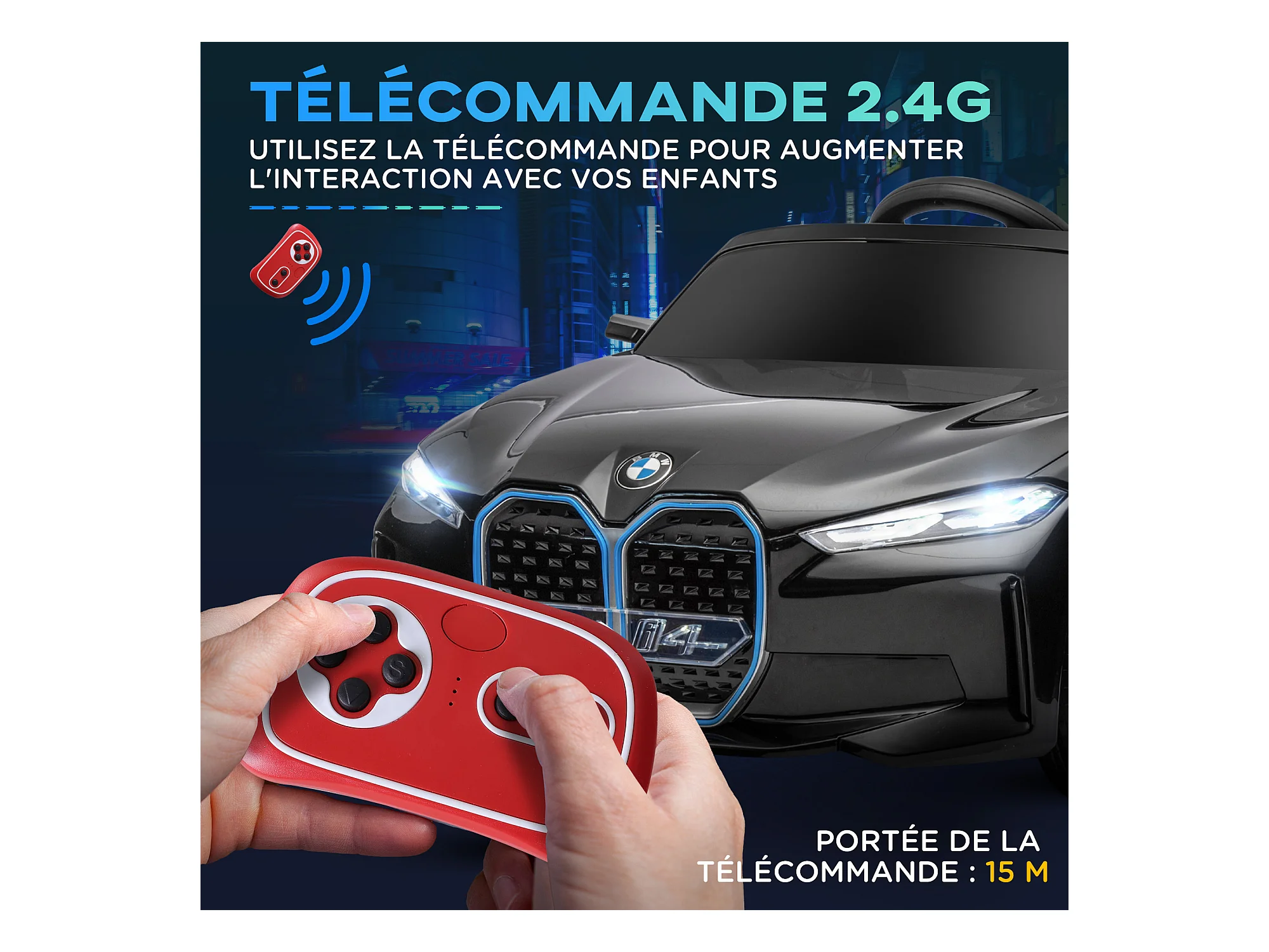 Voiture électrique enfant licence BMW I4 12V 3-5Km/h max. nombreux effets télécommande noir