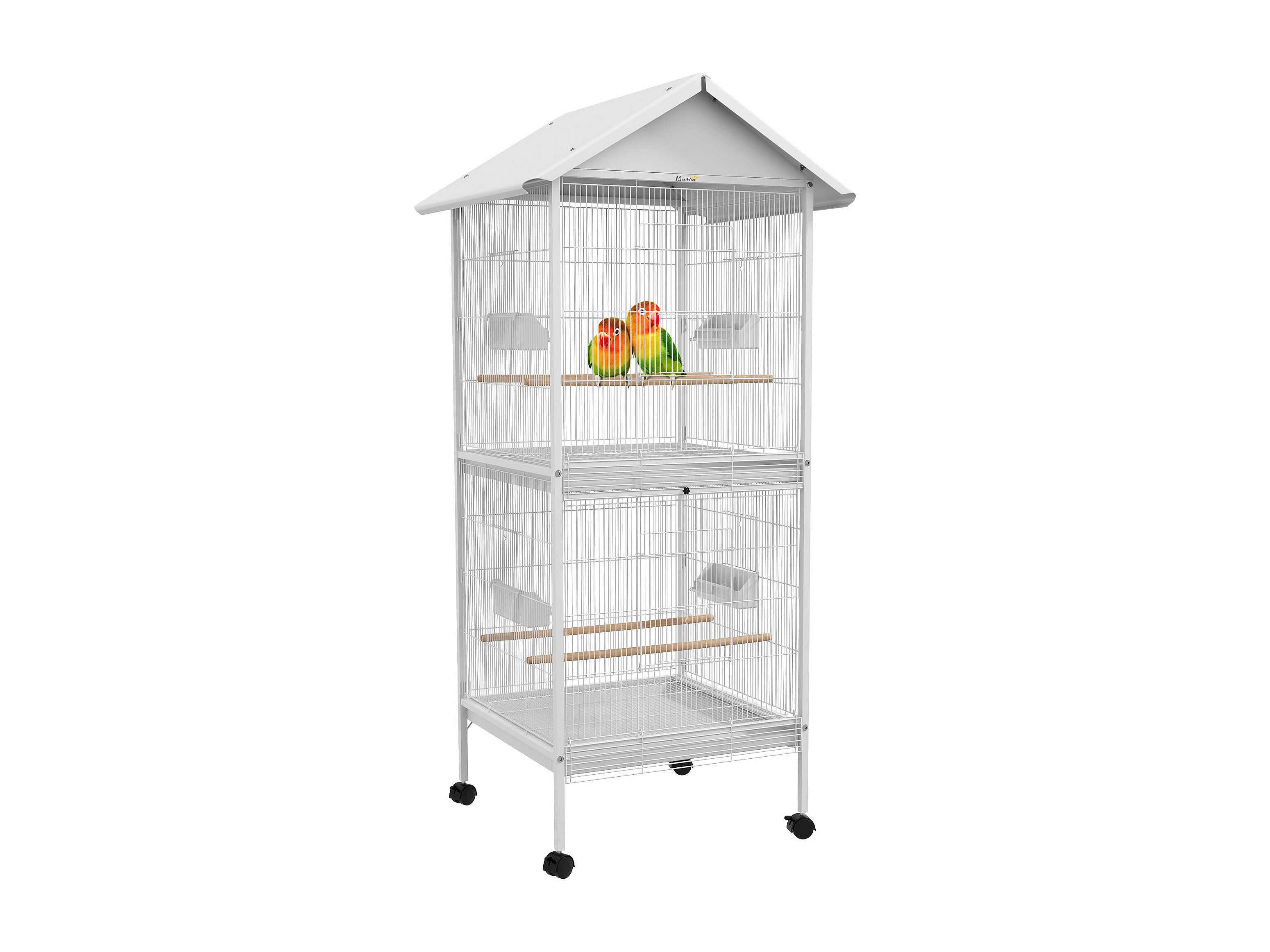 Volière cage à oiseaux sur roulettes design maison mangeoires perchoirs 10 portes plateaux excréments amovibles acier blanc
