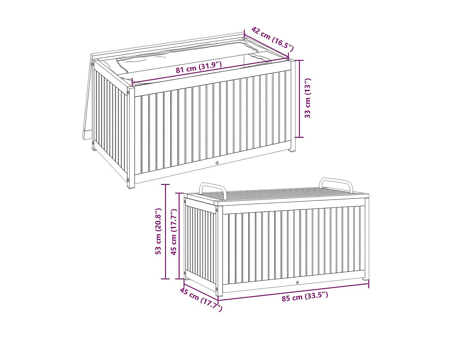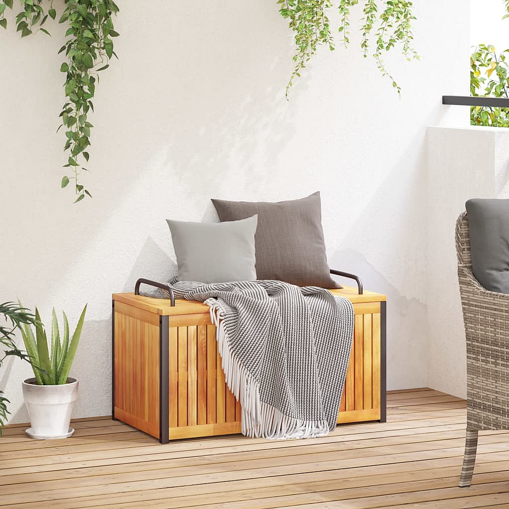 Volrik Boîte à coussins d'extérieur bois d'acacia solide et acier