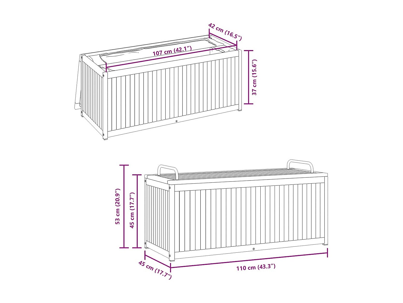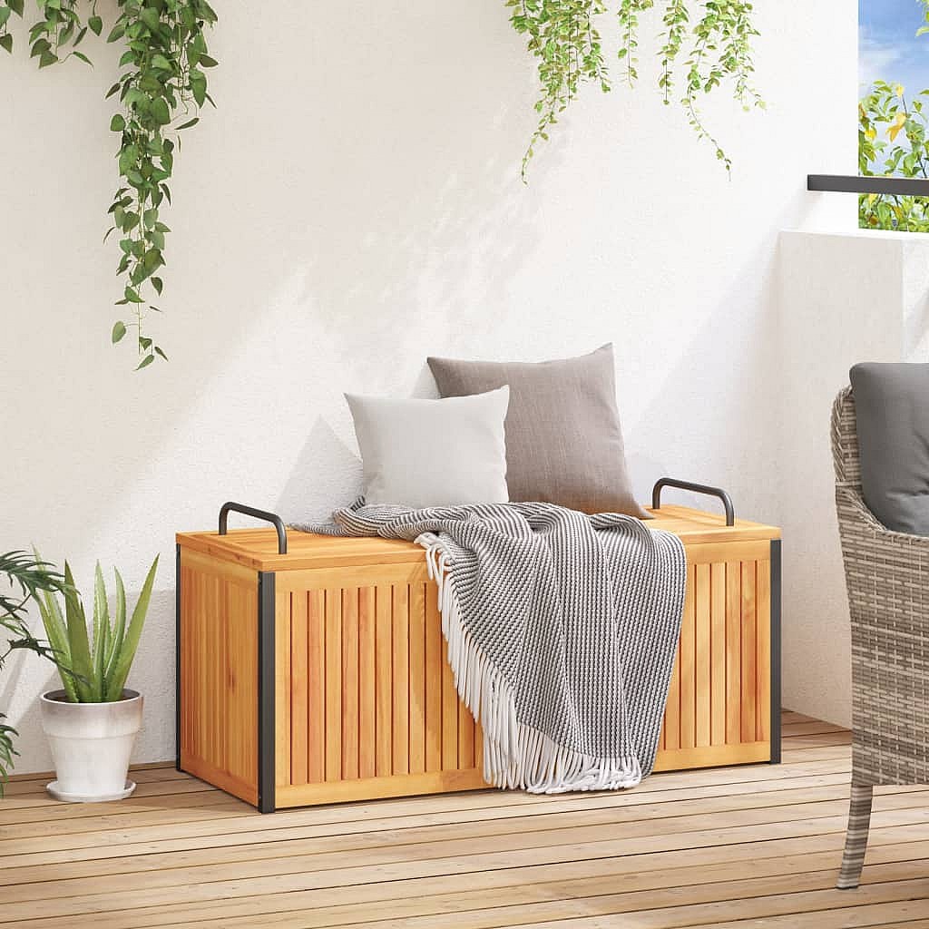 Volrik Boîte à coussins d'extérieur bois d'acacia solide et acier