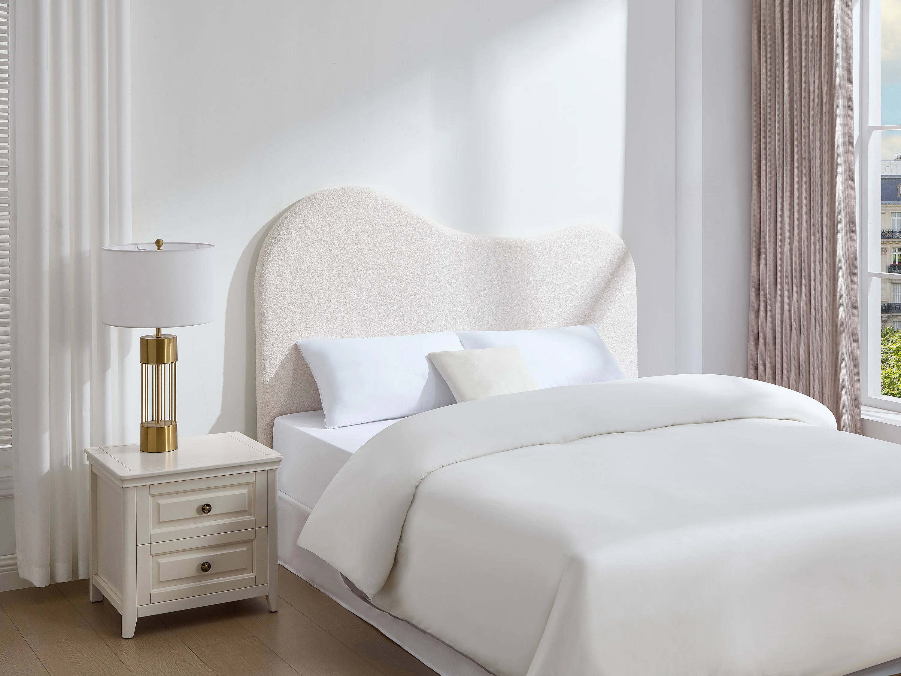 Tête de lit 180 cm - Tissu bouclette - Blanc - VORIOTA