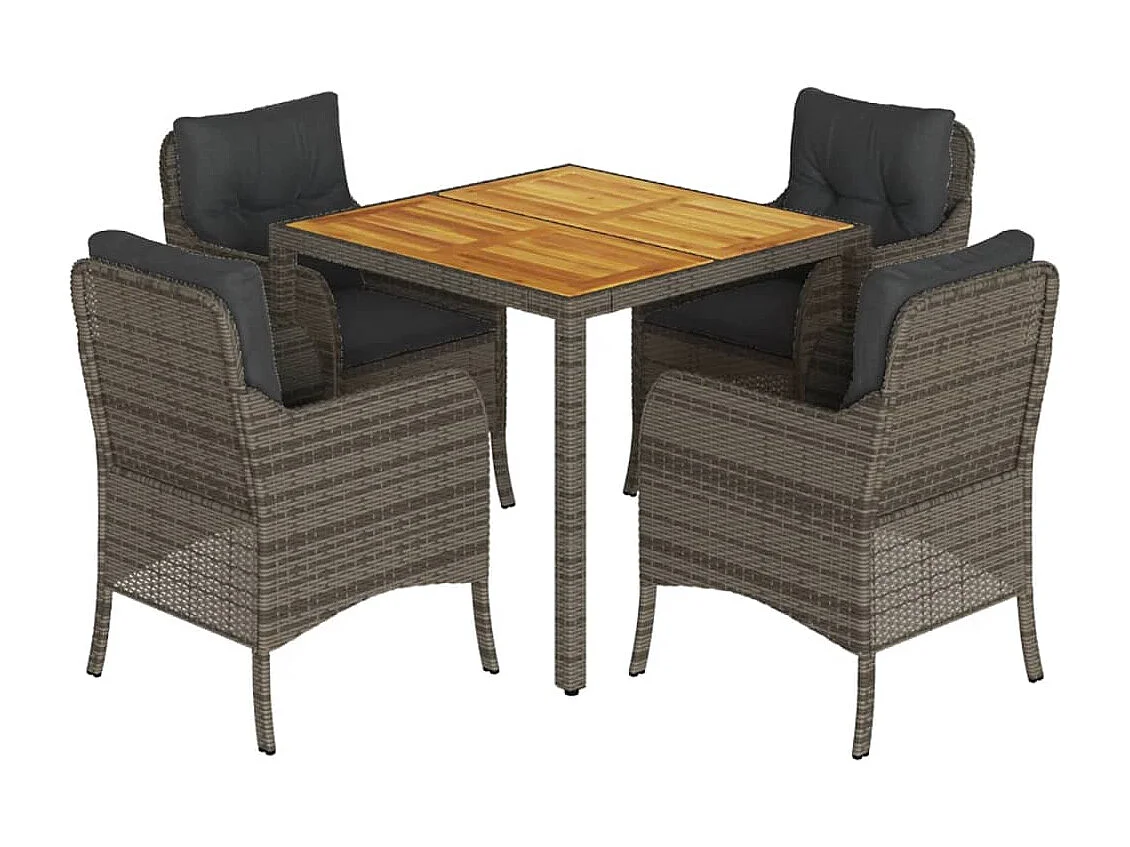 Waalre Ensemble à manger de jardin 5 pcs coussins gris résine tressée