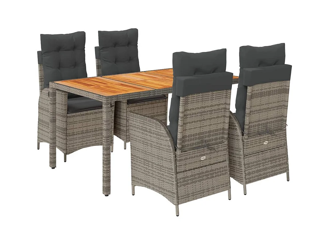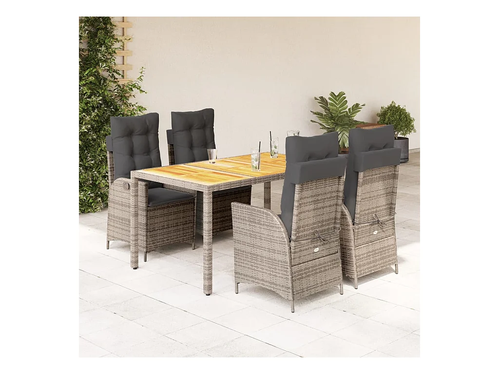 Wanda Ensemble à manger de jardin 5 pcs coussins gris résine tressée