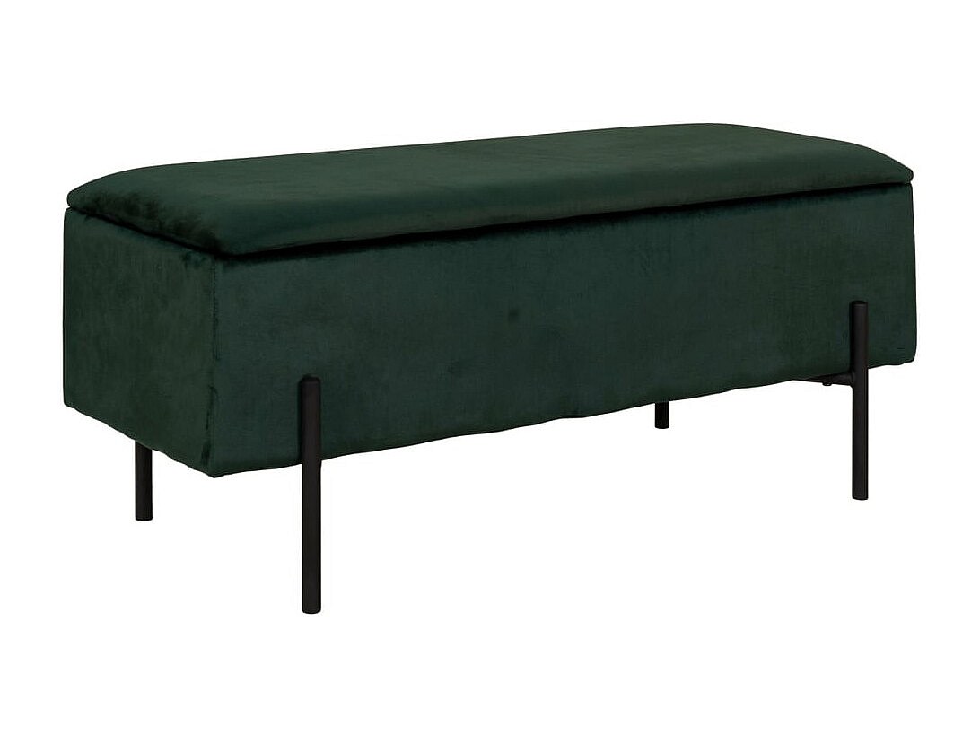 Banc moderne avec coffre de rangement tissu et pieds en métal noir Navika-Couleur Vert amande