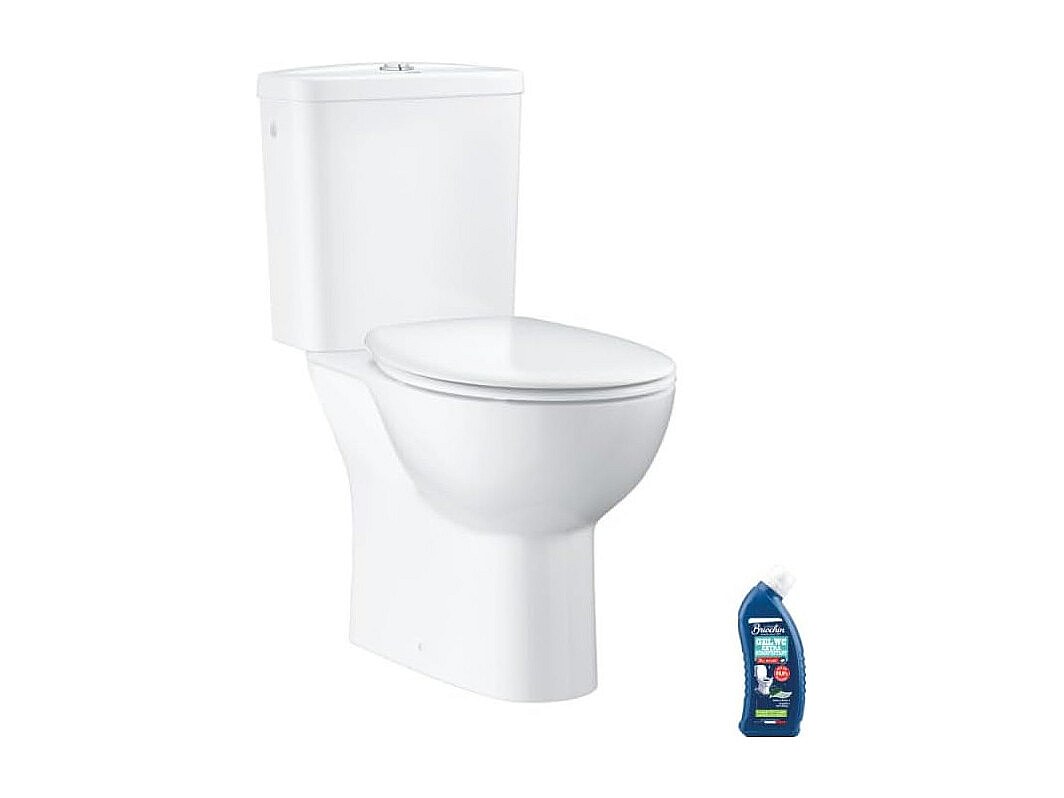 WC à poser sans bride GROHE Bau Ceramic Quickfix avec abattant frein de chute declipsable + nettoyant Briochin