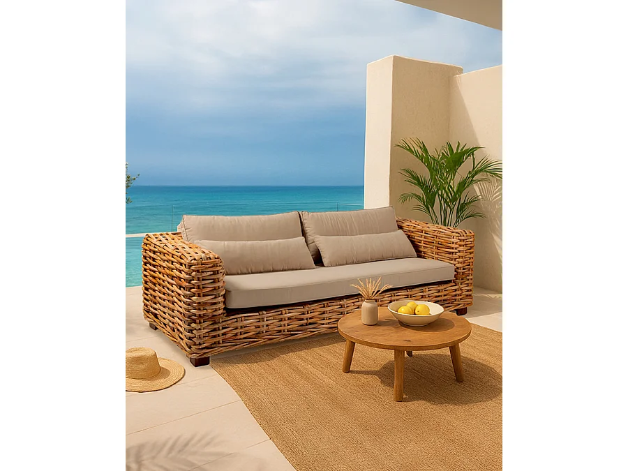 Weaverly - Canapé de jardin 3 places en rotin tressé