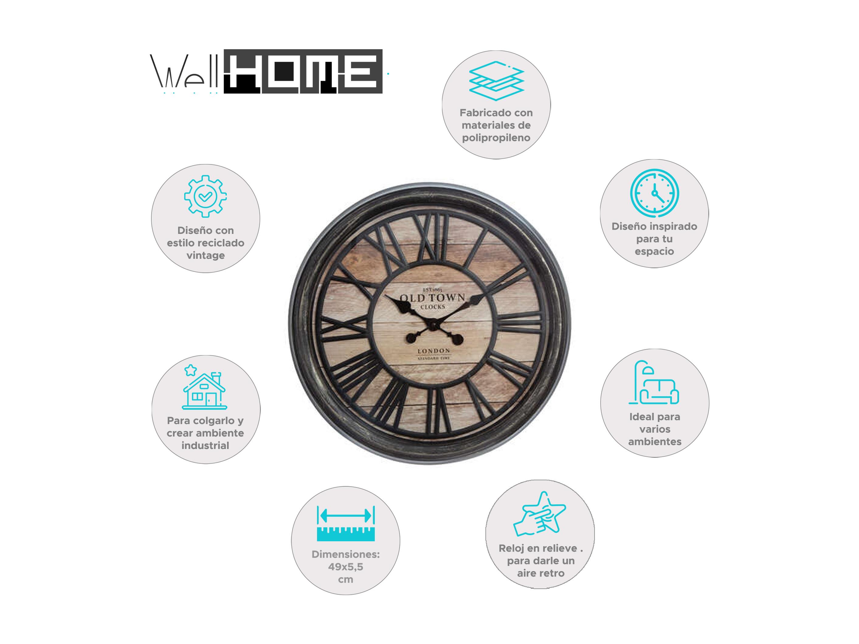 WELL HOME - Horloge décorative en relief en plastique Ø49x5cm