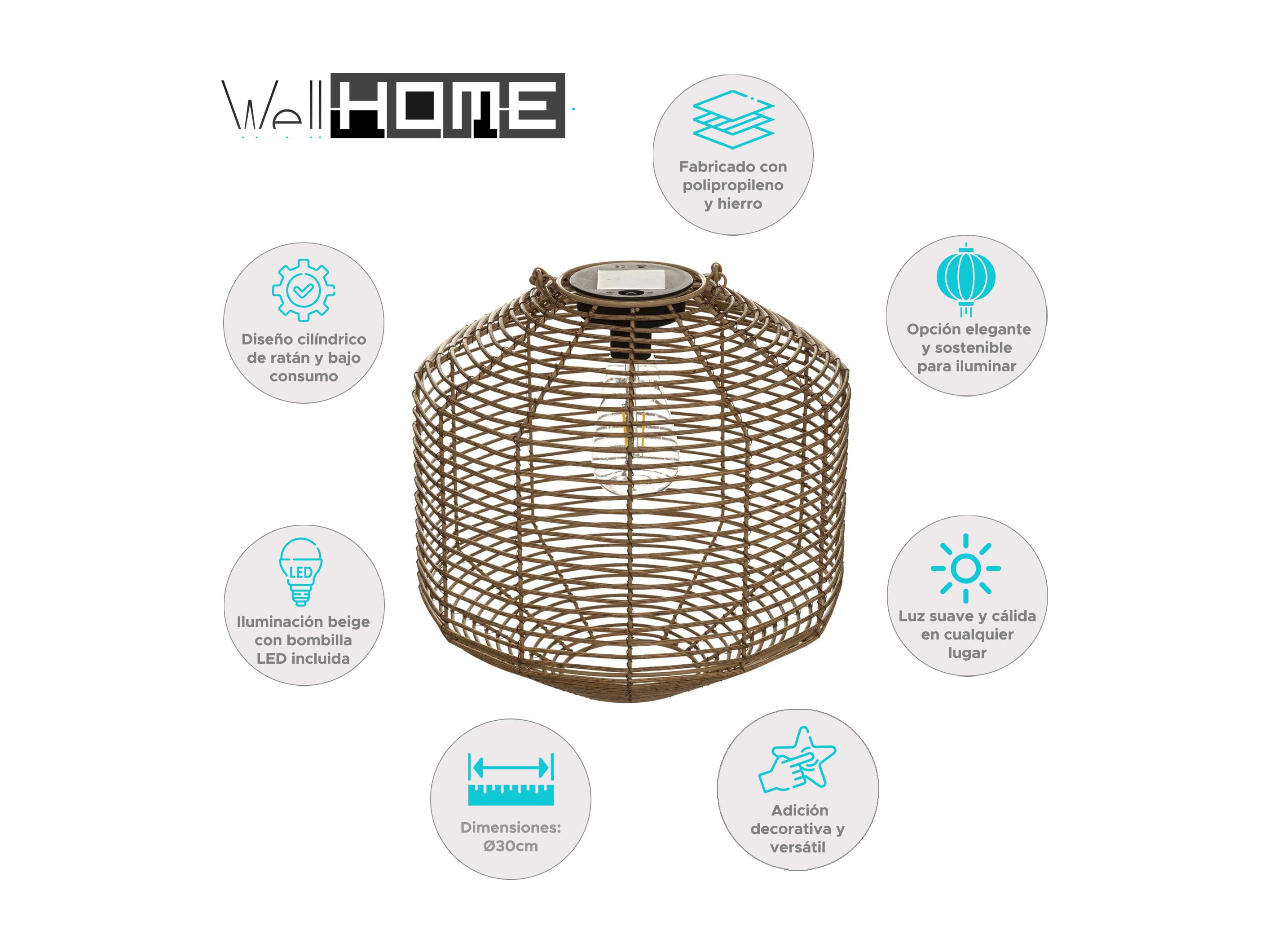 WELL HOME - Lampe solaire en rotin beige Ø30