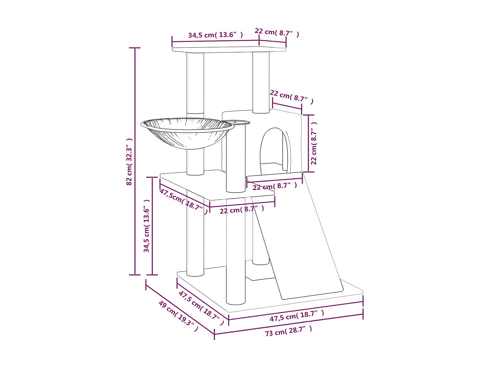 Wendir Arbre à chat avec griffoirs en sisal Crème 82 cm