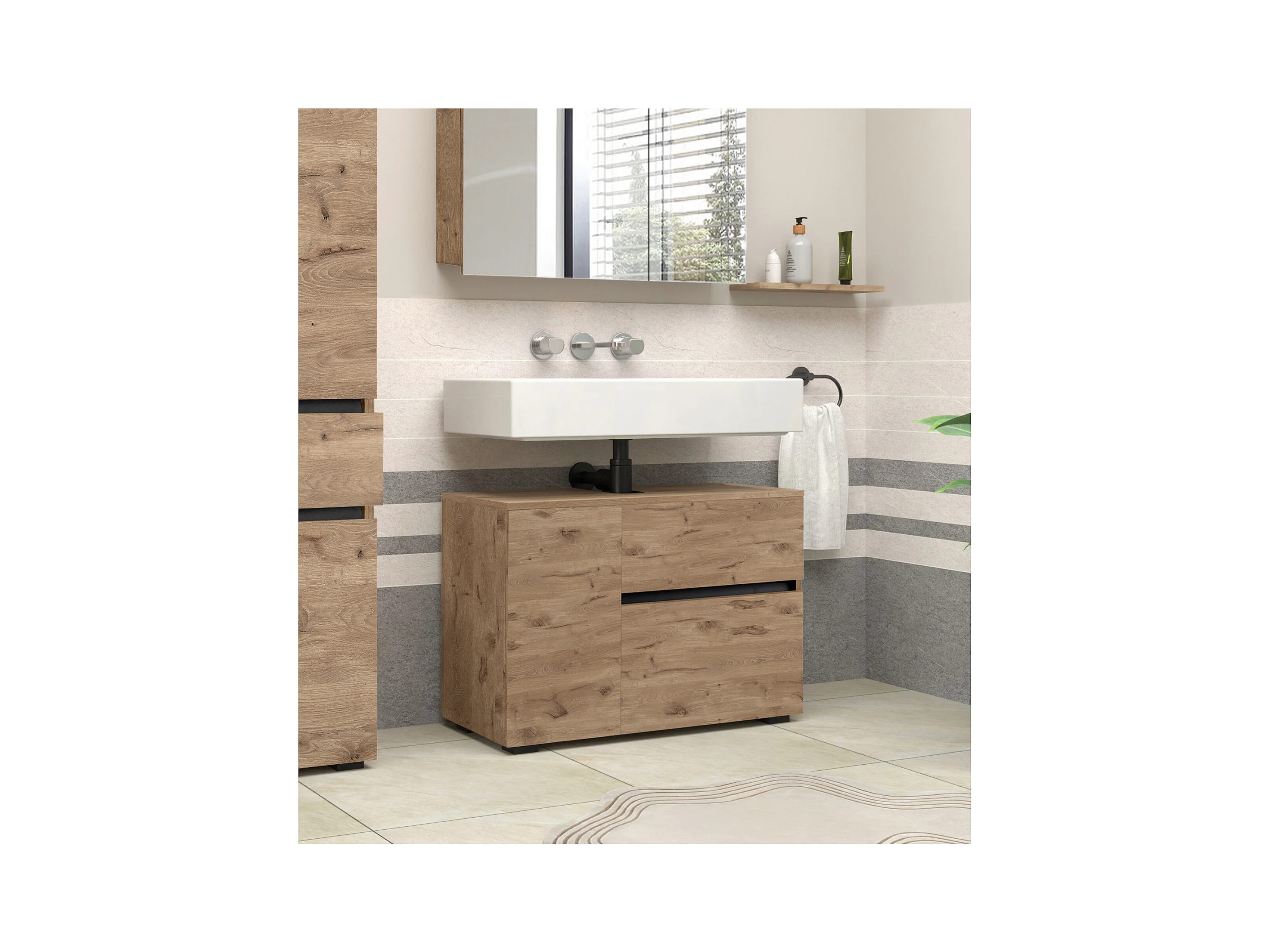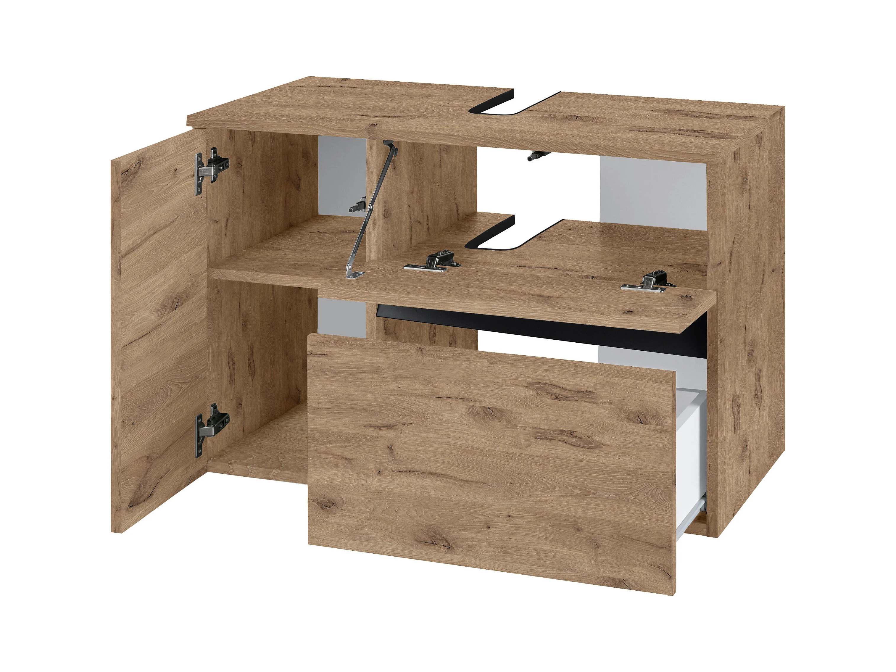 Wisla | Meuble évier avec 1 porte et 1 tiroir 1 abattant aspect chêne