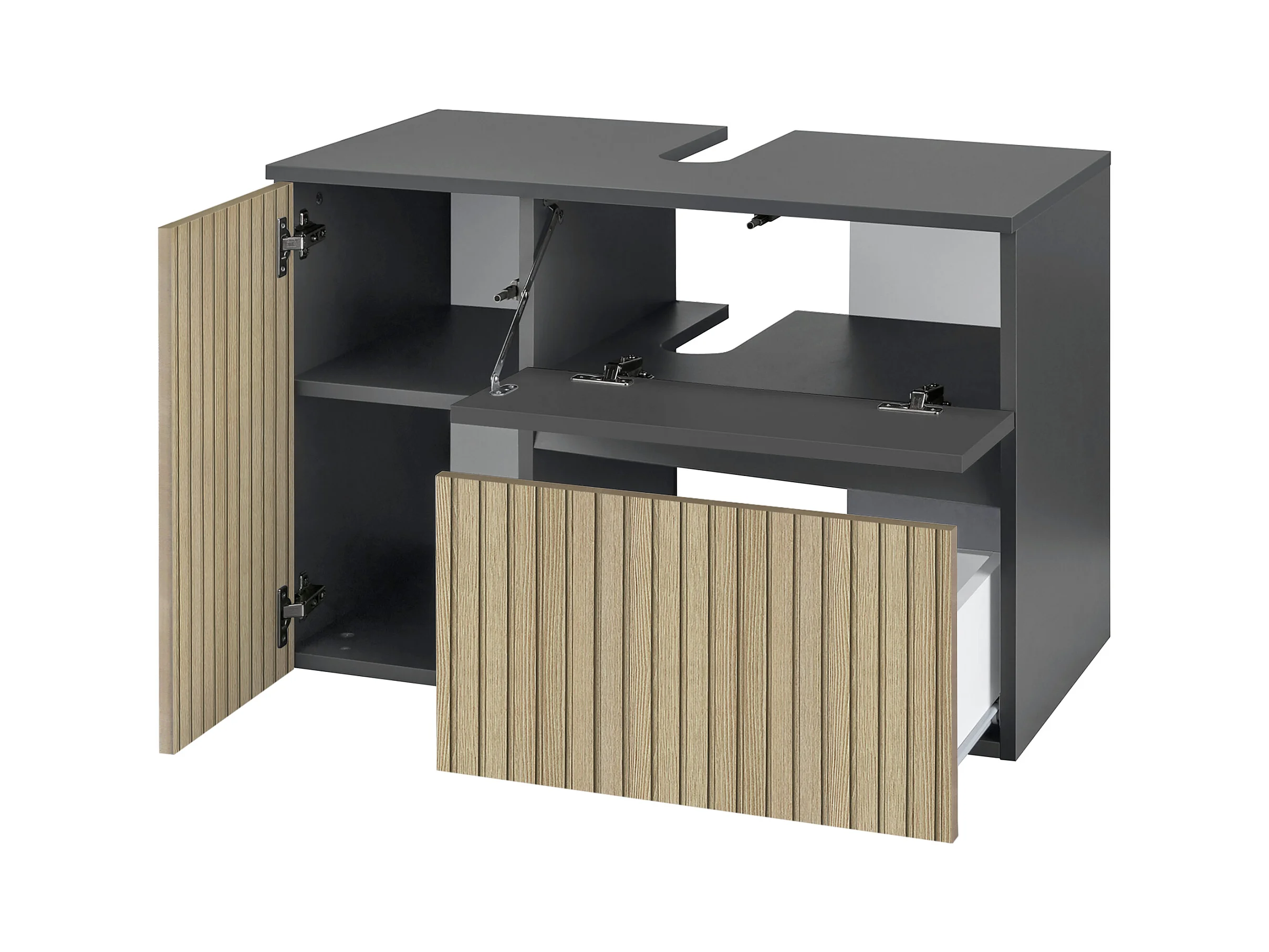 Wisla | Meuble évier avec 1 porte et 1 tiroir 1 abattant aspect chêne