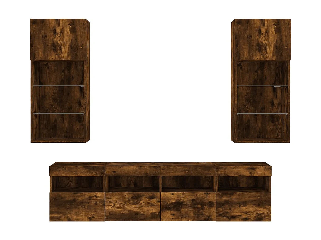 Xorlin Unités murales TV avec LED 5 pcs chêne fumé bois d'ingénierie