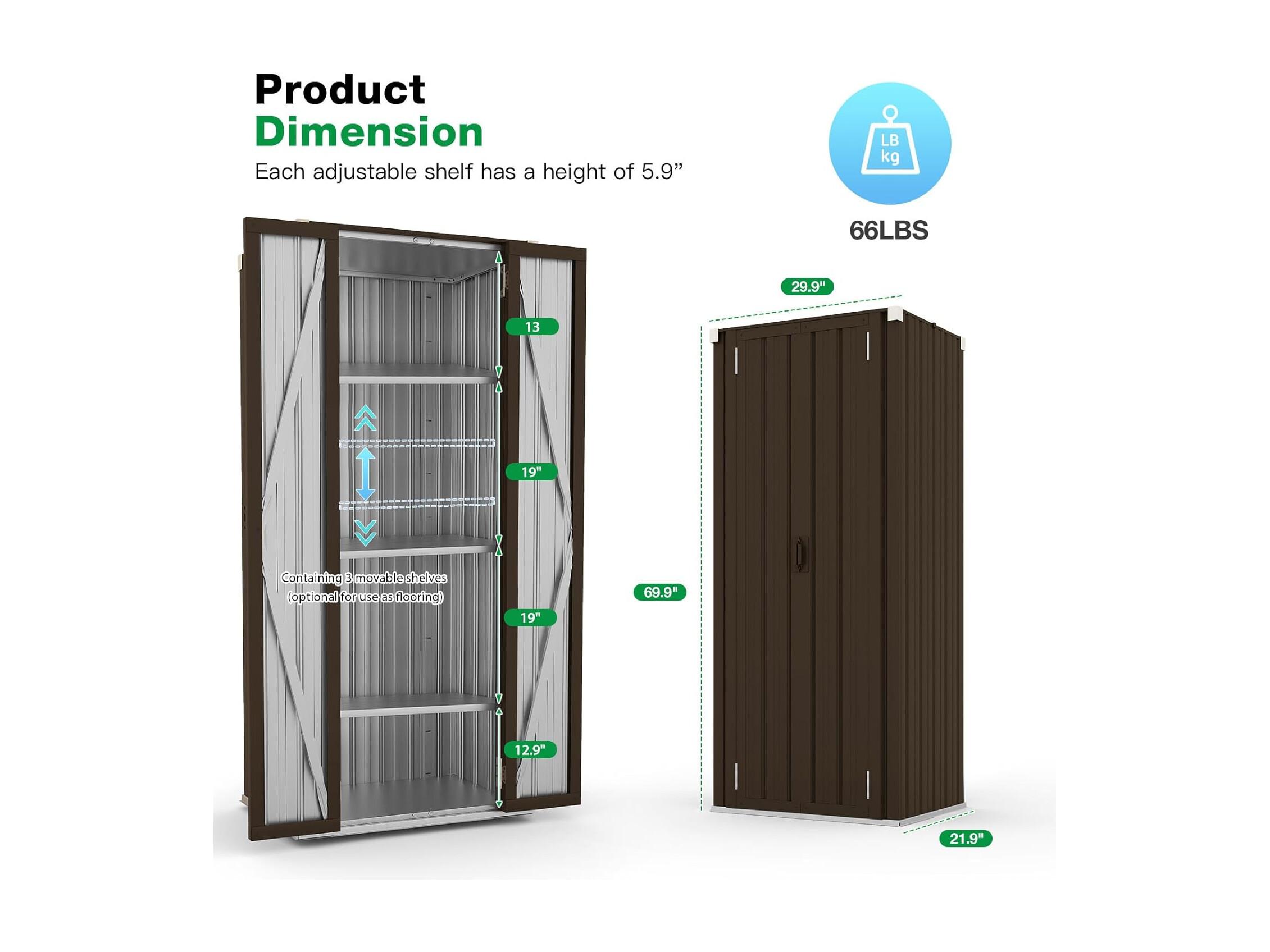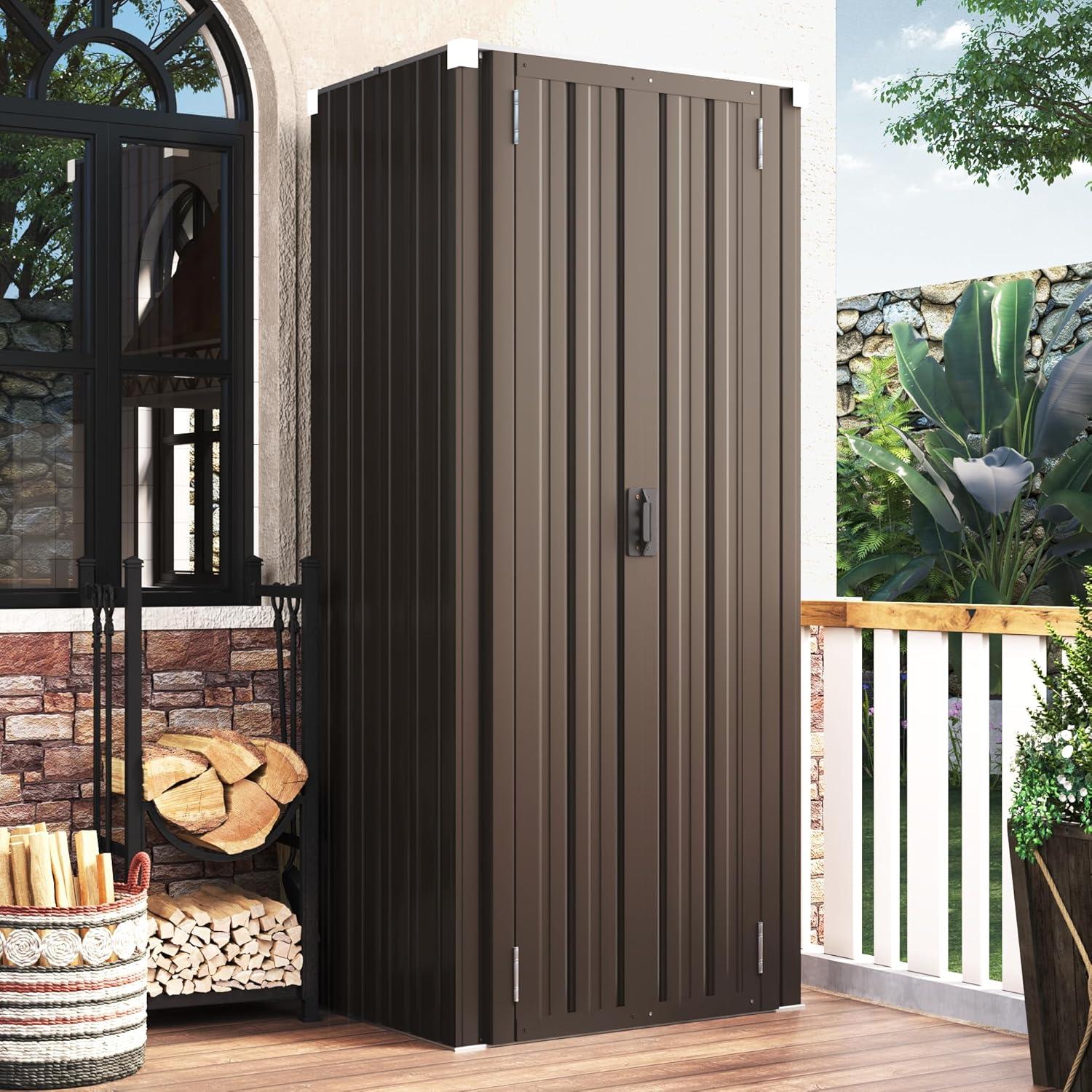YODOLLA Armoire de Rangement d'extérieur Etanche - Métal - Abri de Jardin à 3 Étagères Modulables - 76 x 55 x 178 CM - Marron