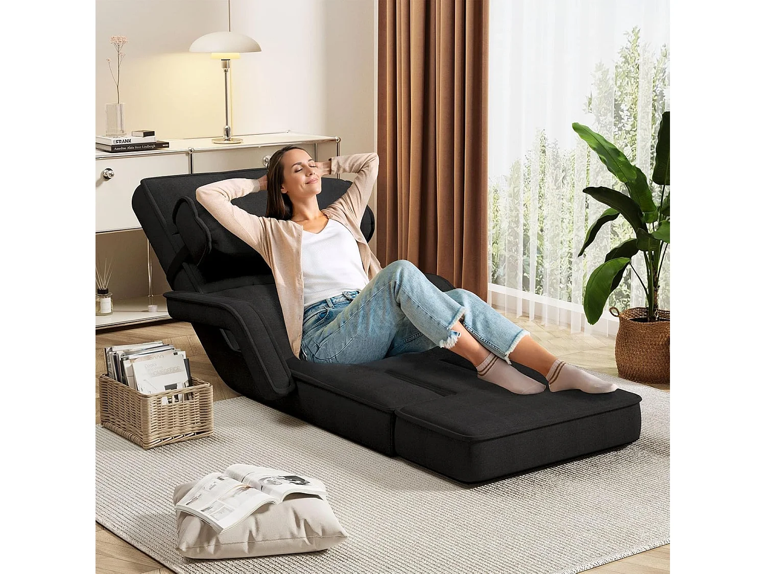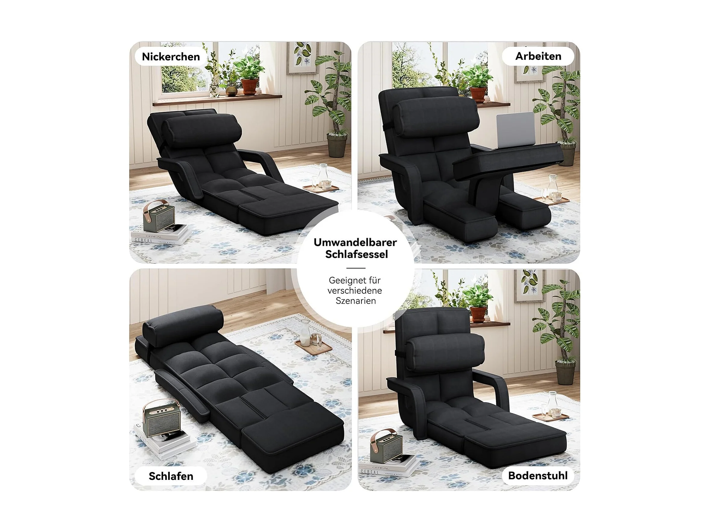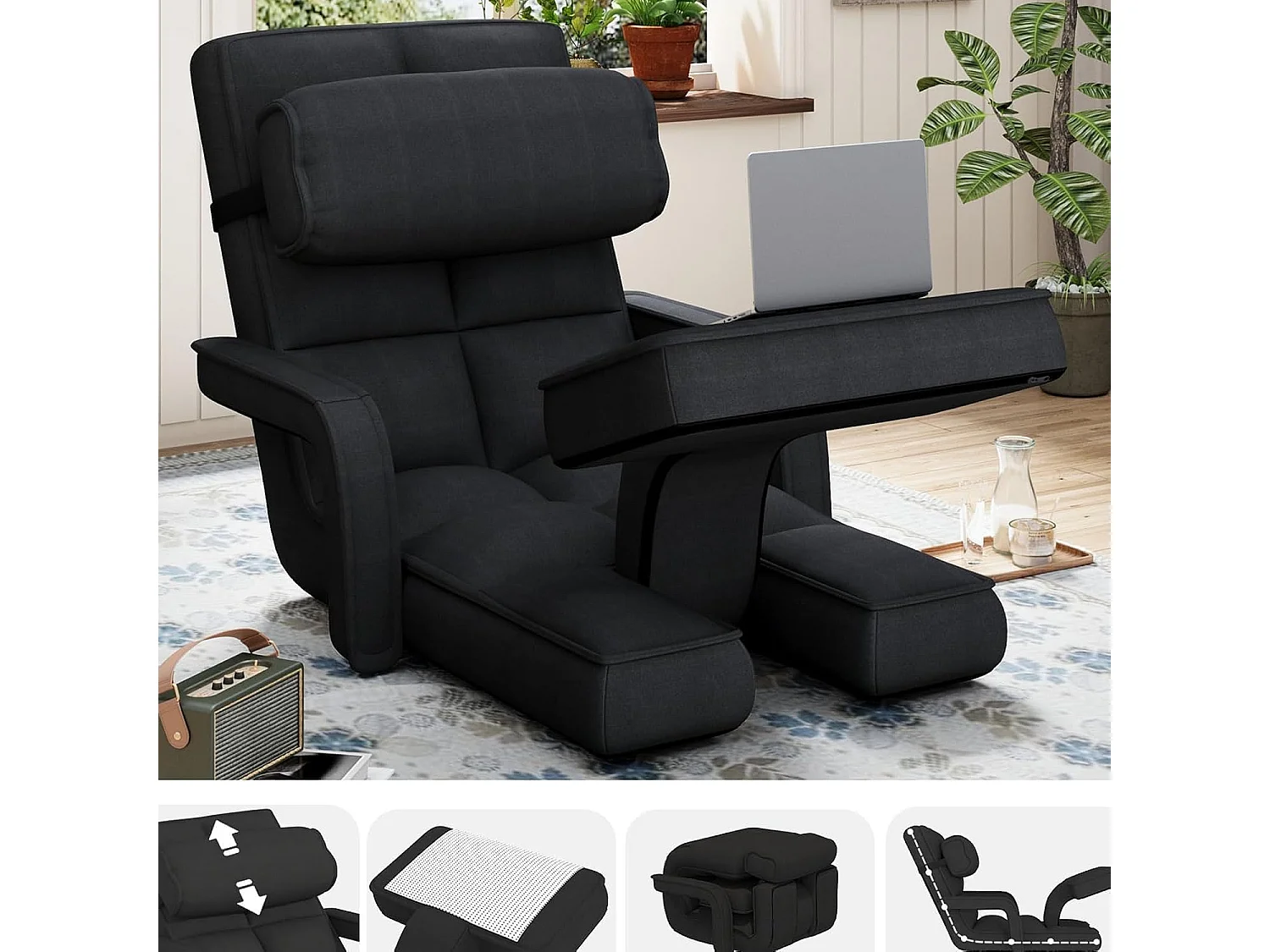 YODOLLA Fauteuil de Sol, Pliable avec coussin & repose-pieds pour chambre, Bureau et maison, Noir