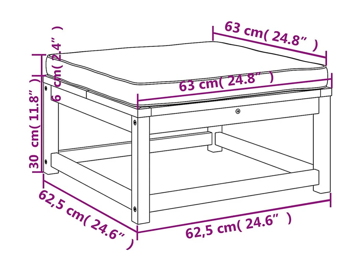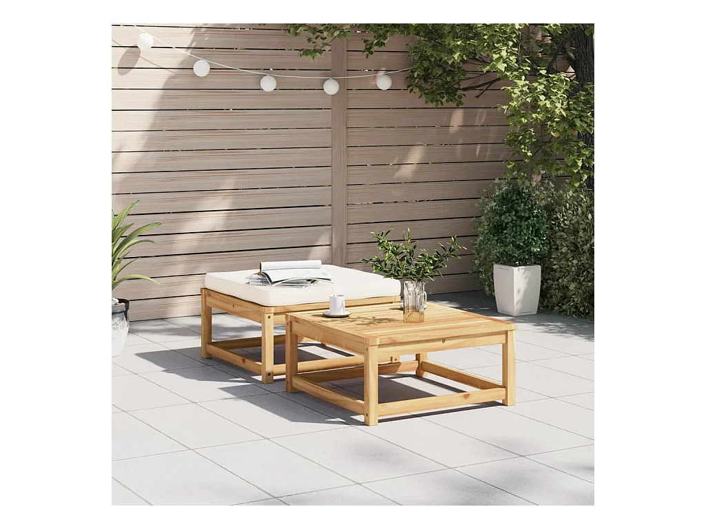 Yuki Repose-pied de jardin avec coussins bois massif d'acacia