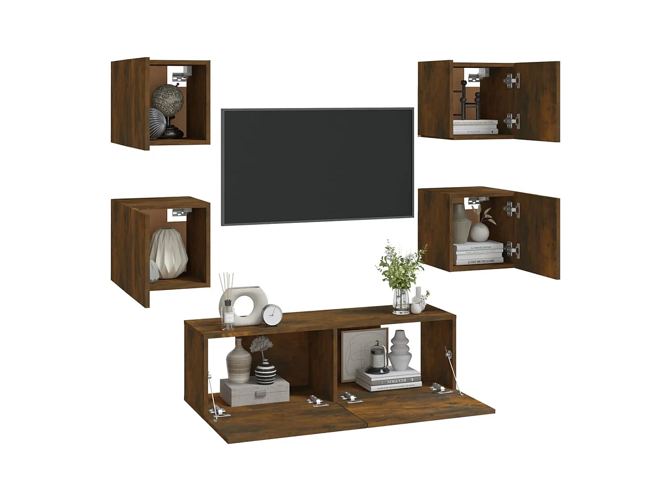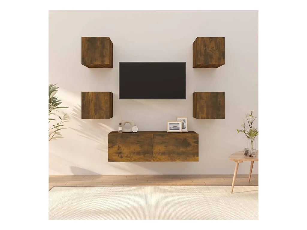 Zaira Fernanda Ensemble de meubles TV muraux Chêne fumé Bois d'ingénierie