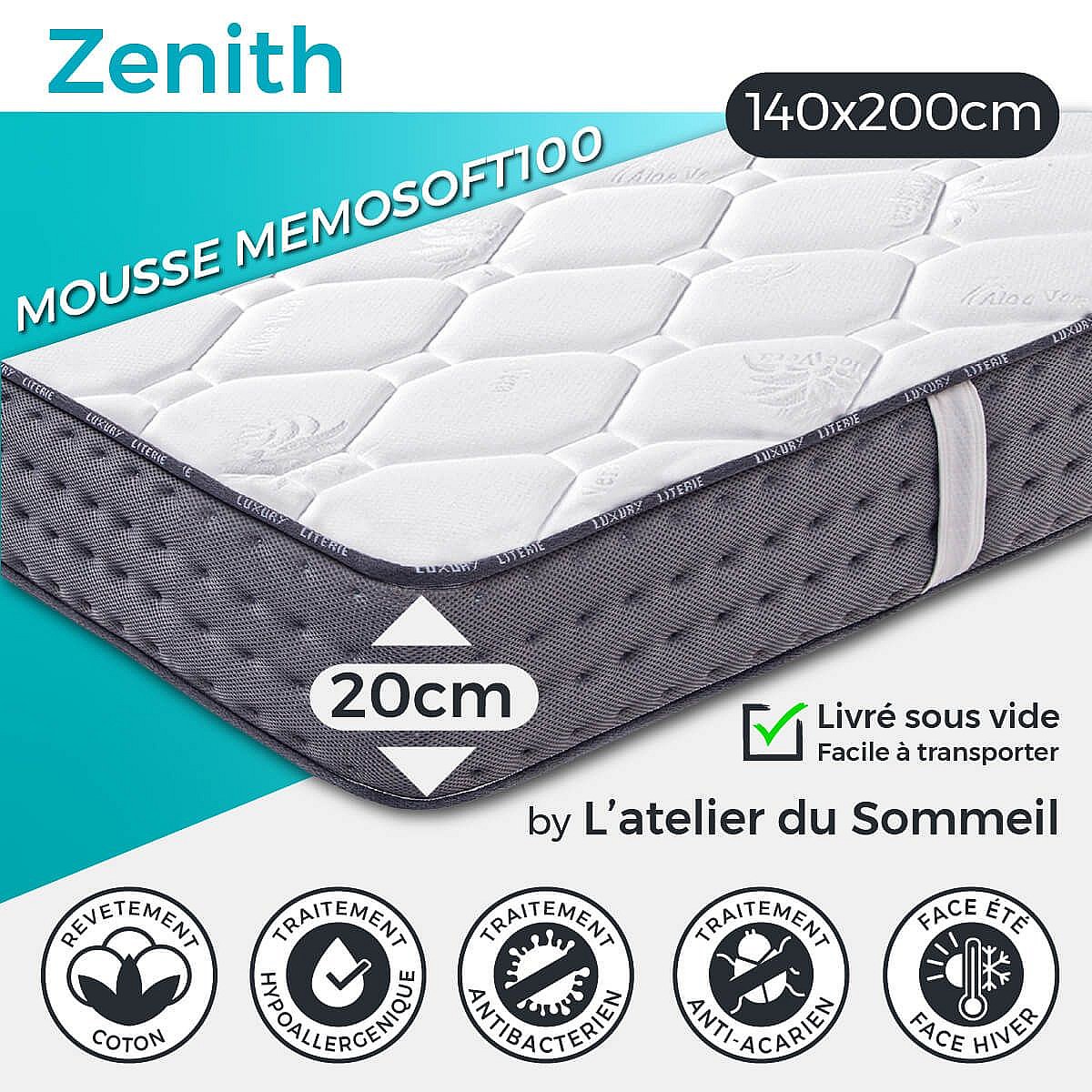 ZENITH - Matelas 140x200 cm Mousse haute résilience Soutien ferme Ep.20cm