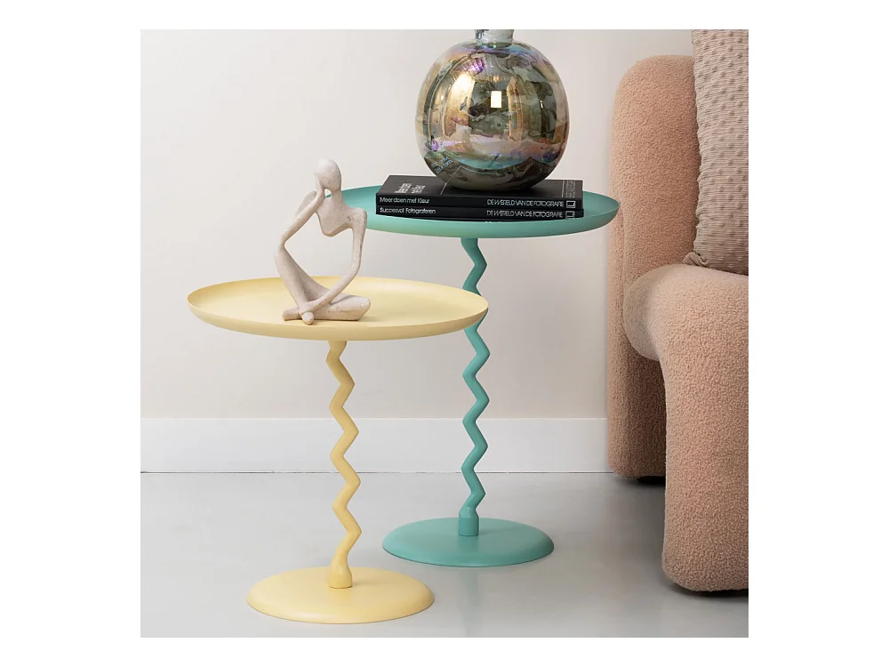 Zigzag - Table d'appoint ronde en métal ø44cm - Turquoise