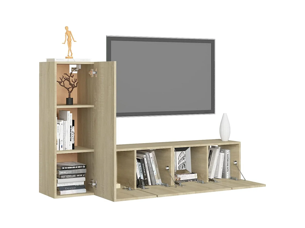 Zyanio Ensemble de meubles TV 3 pcs Chêne sonoma Bois d'ingénierie